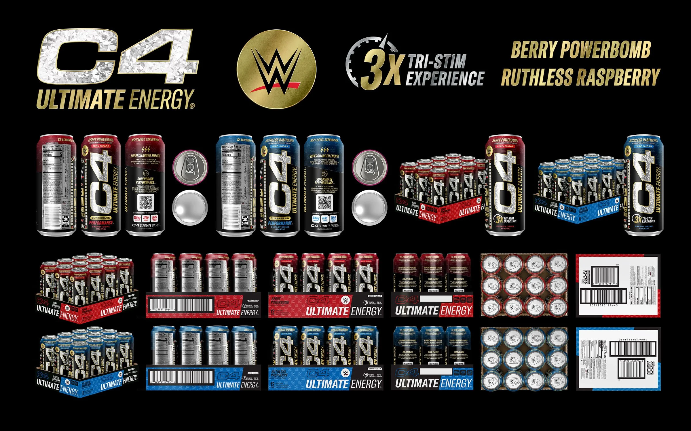 Fuel your Ultimate Undisputed Performance with C4 Ultimate Energy™ x WWE® specialty flavor energy drinks. We were tasked with developing a C4 beverage product that equally embodied both the C4® and WWE® brands. Our team managed every stage of the packaging design process, from concept ideation and design asset development to product rendering creation. We also provided print consultation, collaborated with vendors, engineered print mechanicals, oversaw press approvals, adapted multi-pack designs, and ensured strict regulatory compliance for international launches.